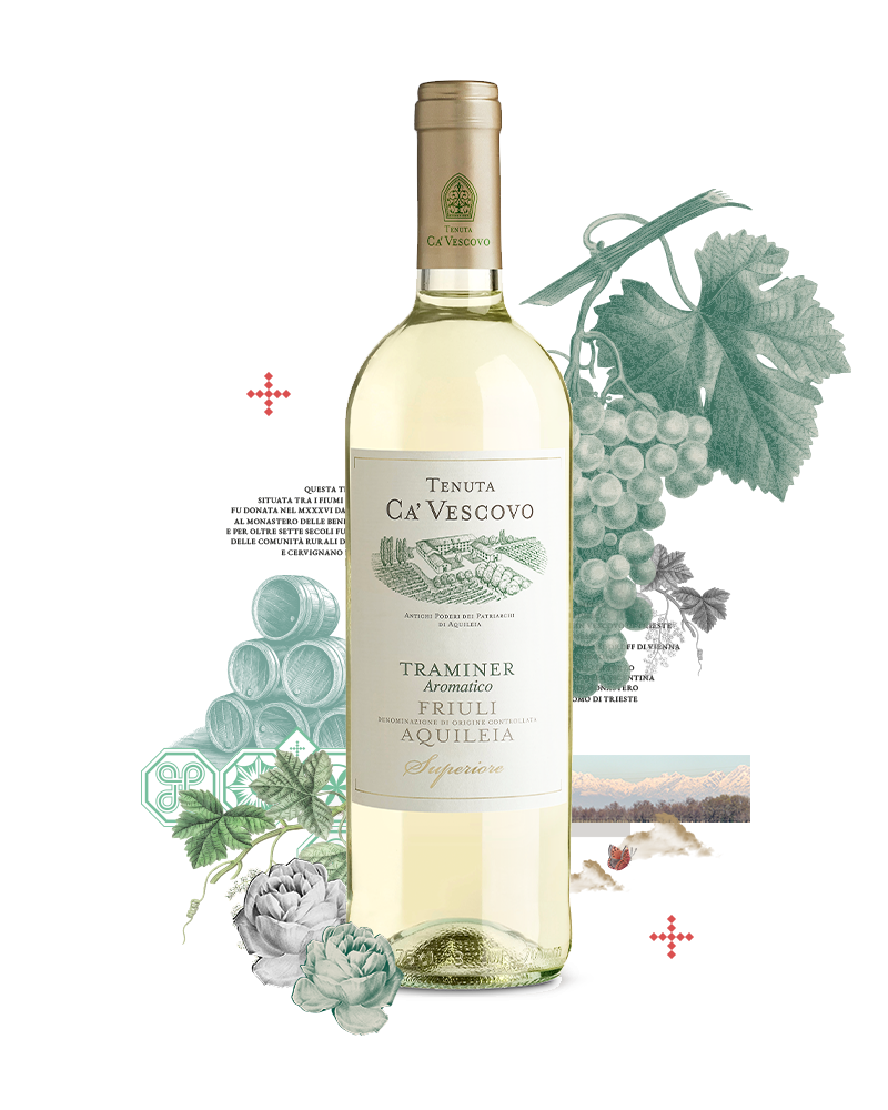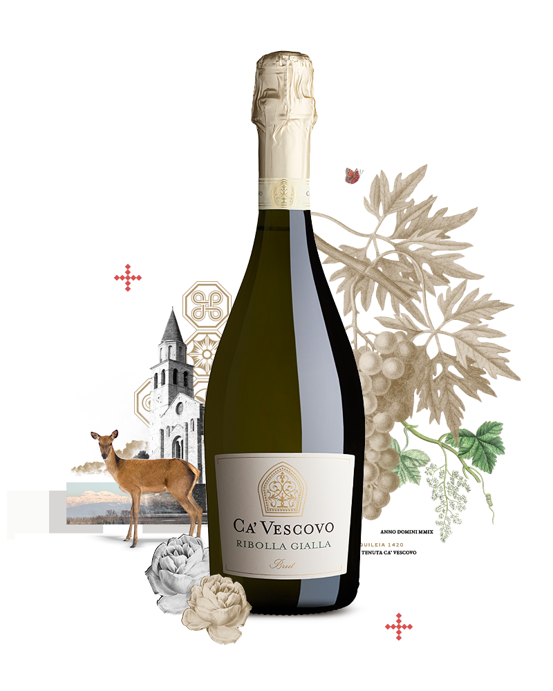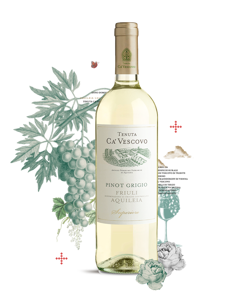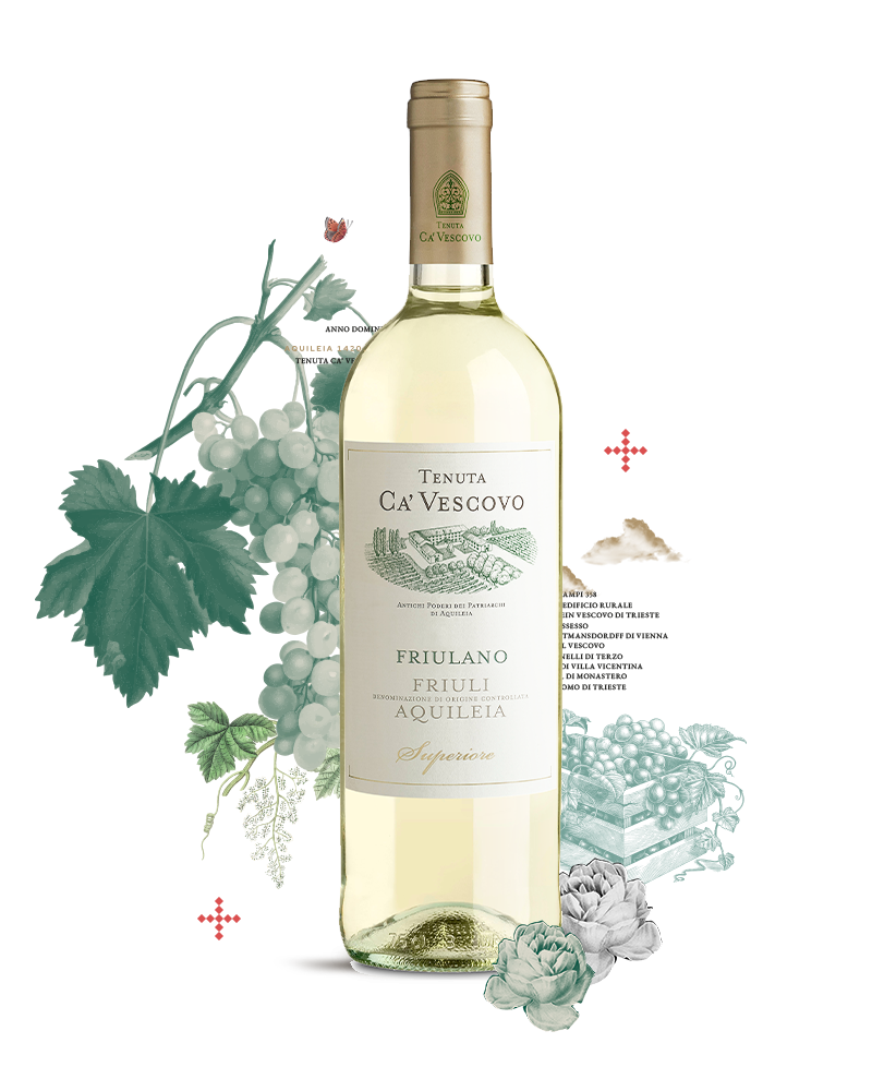 In posizione particolarmente favorevole alla coltivazione della vite, tra le Alpi Carniche e le miti brezze dell’alto Adriatico, la natura prospera a fianco dei vigneti disegnati come giardini. Nelle terre degli antichi possedimenti dei Patriarchi di Aquileia e del Vescovo di Trieste, la Tenuta Ca’ Vescovo si giova di una storia ultracentenaria e di una vocazione cristallina per la produzione del suo originario vino friulano.